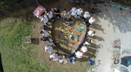 In diesem Jahr wollten Mitarbeiter der Dr. Pecher AG sowie der Pecher Technik GmbH Kindern von Flüchtlingsfamilien in einem in der Nachbarschaft neugebauten Containerdorf Spielmöglichkeiten schaffen, die bisher nicht vorhanden waren. Dazu wurde ein Sandkastenprojekt konzipiert für das –nach monatelanger Vorarbeit, Gesprächen mit den zuständigen Behörden sowie der Berücksichtigung aller Auflagen in der vorlaufenden Planung – die eigentliche Arbeit am Freitagmorgen endlich beginnen konnte. Zusammen mit dem Freundeskreis für Flüchtlinge in Erkrath e. V. und zahlreichen engagierten Flüchtlingen wurde tatkräftig mitangepackt. Die unterschiedliche Herkunft sowie vorhandene Sprachbarrieren waren schnell überwunden und gemeinsam wurde das Projekt innerhalb des vorgesehenen Zeitplanes fertig, so dass man am Nachmittag voller Stolz dem Bürgermeister der Stadt Erkrath das gelungene Ergebnis präsentieren konnte.